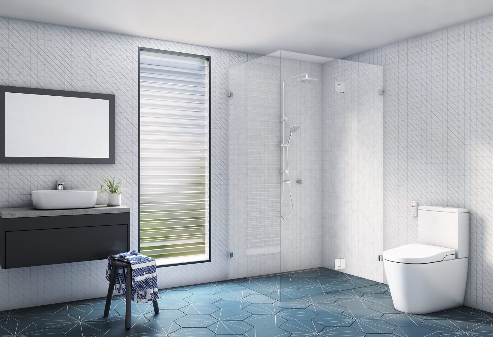 Create a high-impact statement with flooring that really pops. Keep it simple on the walls and let your feature floor anchor your bathroom style.