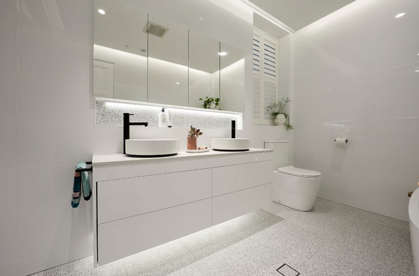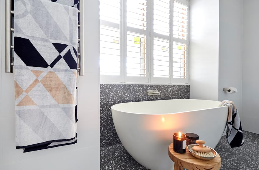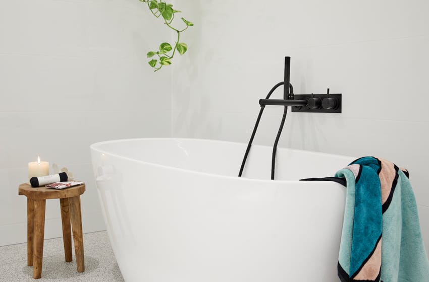 With an effortless combination of classic chrome and modern matte black, Courtney and Hans bring the best of both worlds to their bathrooms. Remaining consistent in style, they’ve echoed tapware from Sussex Scala throughout, supported by organic shapes and an understated white and grey palette.