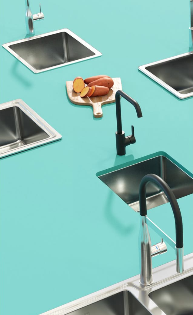 Nature lures animals with colour. We do the same with our incredible metallic finishes. Superb sink designs in glimmering gold, striking stainless steel, brilliant brass, smoking hot gunmetal, elegant nickel and beautiful bronze.