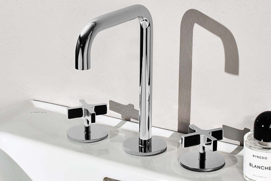 From three-piece basin sets to sleek modern mixers, Edge presents the building blocks for perfection on a journey into geometry.