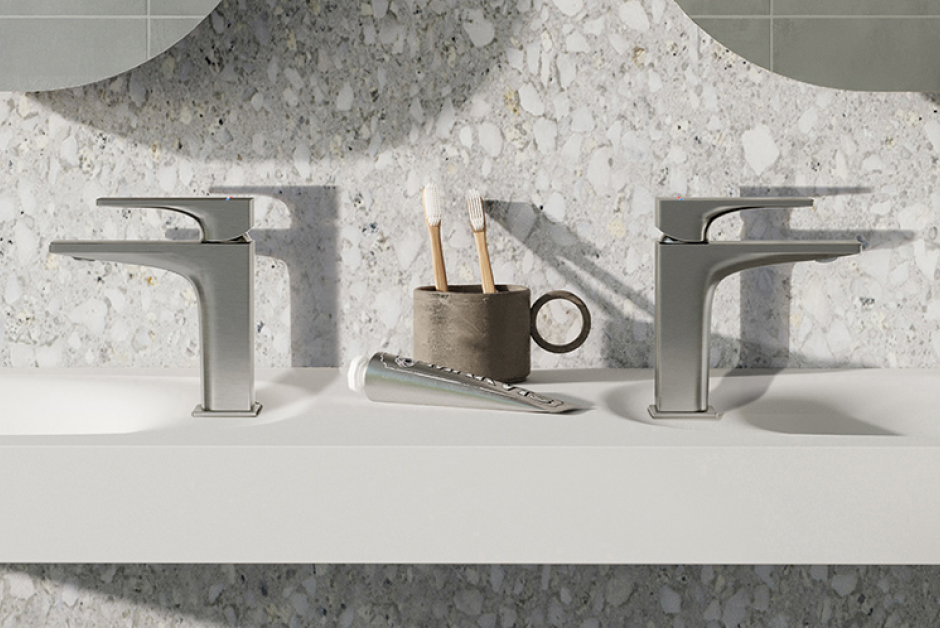 The innovative 2-step mixer cartridge inside Milli Zato taps limit the users flow of water reducing their water consumption over time.