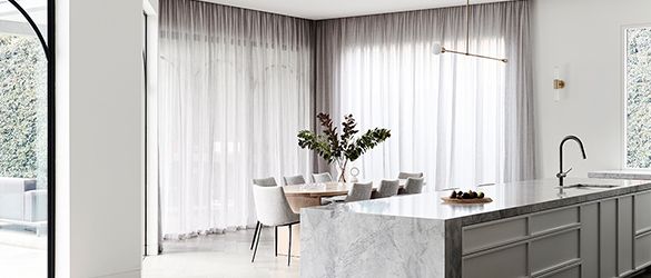The kitchen is Jess’s favourite room in the house. The light and bright space is anchored in solid features. The Franke Impact Granite white sink and Scala Pullout Sink Mixer Tap blend in to and lift the monochrome material palette.
