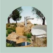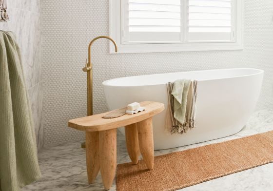 It starts with a vision. With Reece, Three Birds Renovations have realised their biggest project yet in House 14’s main bathroom which is bursting with light and luxury. Upon entering, you are welcomed by the Kado Lux Petite 1500mm Freestanding Bath, perched beautifully under a window. A calming curved wall leads to a walk-in shower that sits beneath a wide skylight. As the sun beams down, the Mizu Drift Overhead Shower in Brushed Gold shimmers.