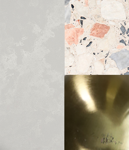 Terrazzo is gorgeous anywhere – and perfectly balances the bright gold and soft grey to truly become a feature of the space.