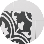 Light and bright, this bathroom playfully uses both sharp lines and circular shapes for a neoclassic or traditional feel.