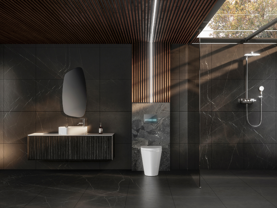 Inwall cisterns are your bathroom’s secret weapon. They offer clean lines and less bulk, come in different finishes and styles, and can make the room feel less crowded — perfect for smaller spaces like powder rooms and ensuites.