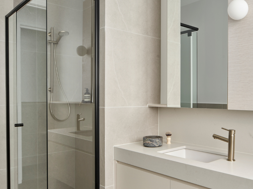 Keep your bathroom looking sleek and modern with handless cupboards, stone benchtops, and large format tiles. Not only do these features ooze sophistication, but they also make cleaning a breeze, so you can spend less time scrubbing and more time relaxing and living your life.