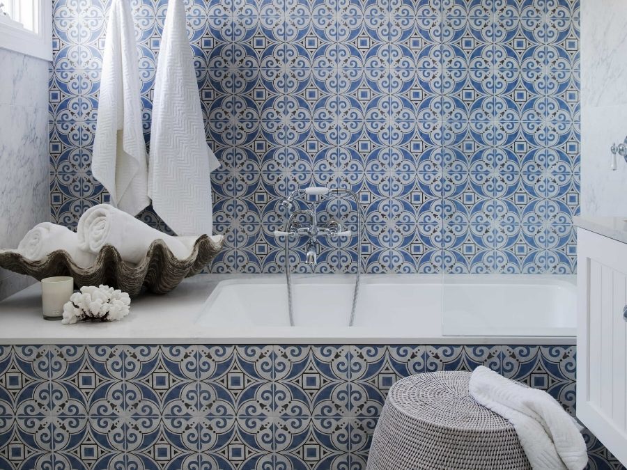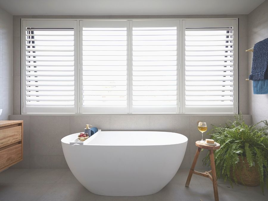 “We love styling our bathrooms with a stool beside the bath so that there’s a handy spot for a gorgeous candle, a glass of wine and a laptop to catch up on Netflix.”