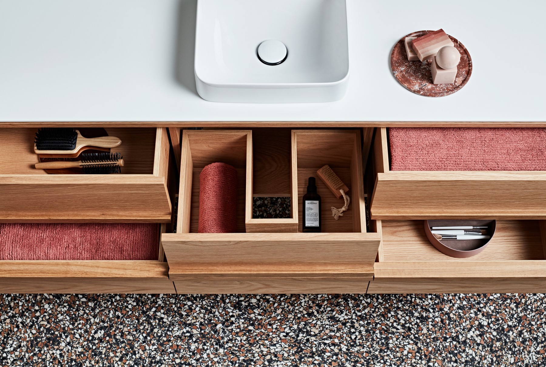 We’re not saying you have to spend hours curating a mood board, but you should still come prepared with an idea of the general feel you’re after. Screengrabs, albums, magazine cut outs and Pinterest boards all provide a great starting point for the conversation with your Reece consultant, while also providing clarity. Browsing for some stunning flatlays online is a really easy way to put an aesthetic together, while creating a mood tray helps with visualising in a tactile way.