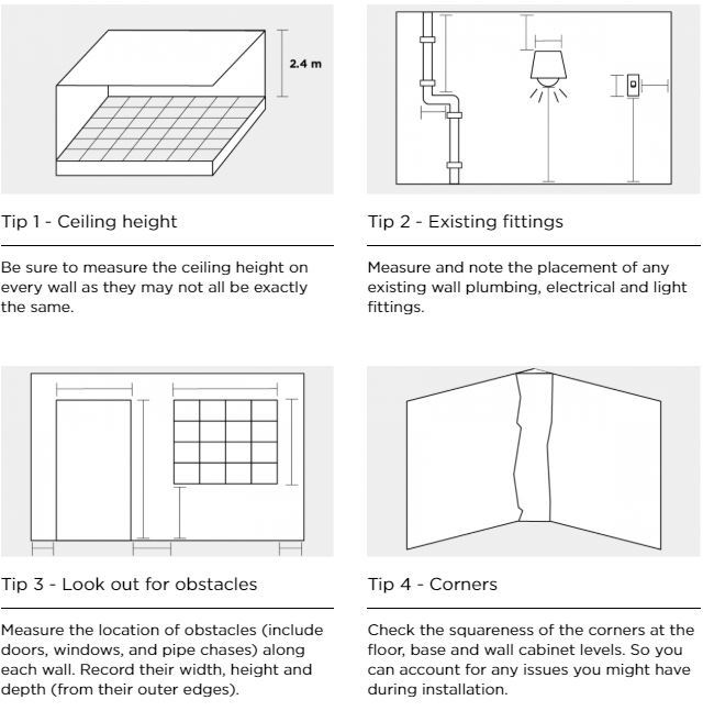 Once you have these dimensions, your consultant will be able to better guide you in choosing the perfect products for your bathroom.