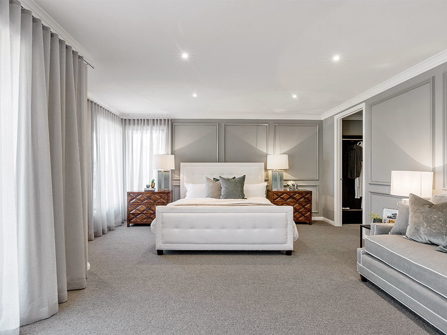 The master suite is the true retreat of the home, an enormous space for two with a mixture of interior and natural light that brings the room to life. The walk in robe provides ample space for storage, entering into the luxurious master bathroom.