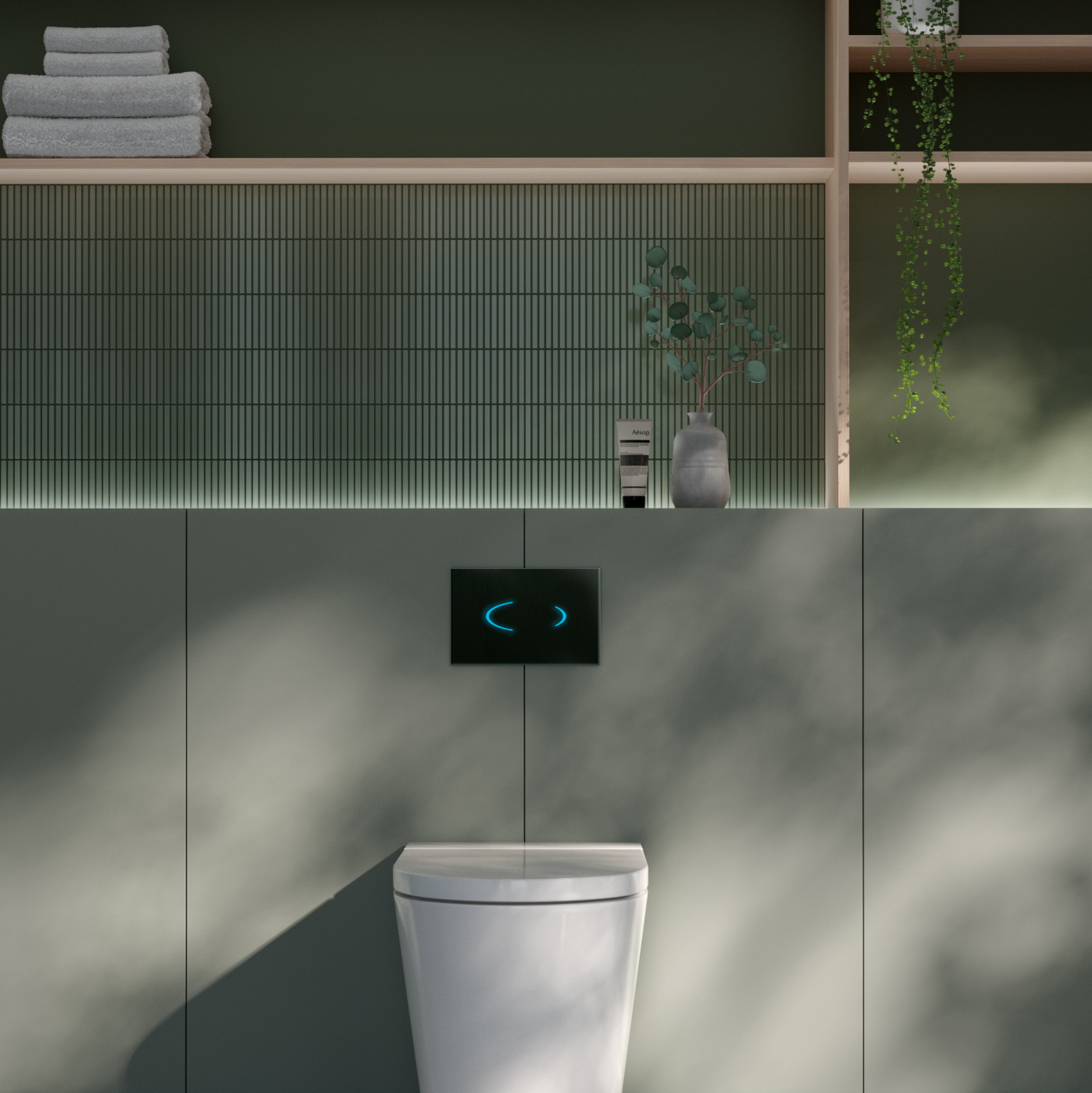 Epitomising hygiene in the bathroom, a sensor flush is key to keeping your bathroom bacteria free. The Hideaway+ Sensor button features advanced hands-free technology for a completely touchless operation that reduces the spread of germs. While the sleek, black glass plate offers a stylish and easy to clean design.