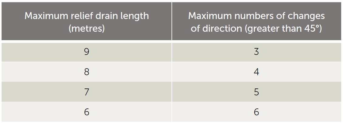 AS/NZS 3500.4, Clause 5.11. outlines the standards for PTR drains including size, material, lengths, and changes of directions greater than 45° you can have in a PTR drain. Check out the specifics to be sure.