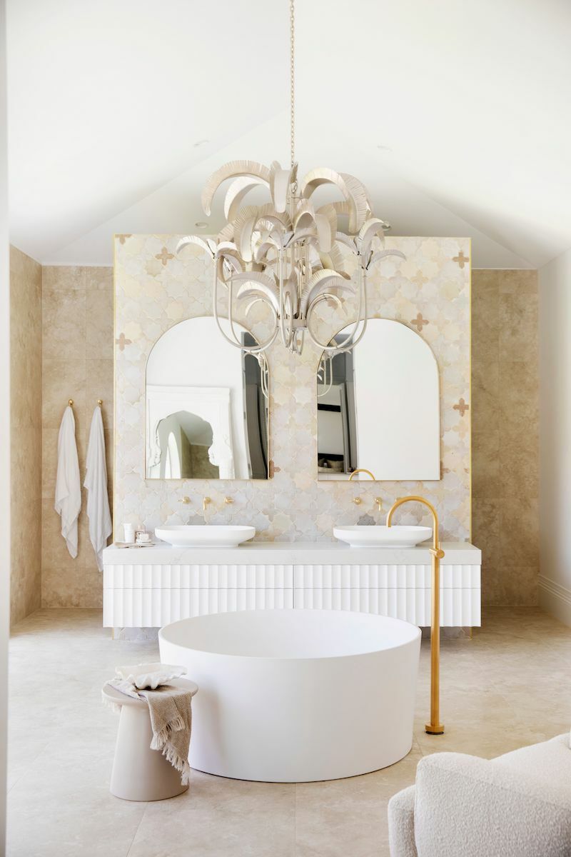 Three Birds had two beautiful houses go live this year, each one with a very different bathroom aesthetic, and we were lucky enough to get a private tour through each. House 13 had several bathrooms, but the ensuite was arguably the best we’ve seen in years: an expansive, light-filled space with floor-to-ceiling arched windows and the dramatic LAUFEN VAL Round Freestanding Bath, positioned perfectly in the centre of the room.