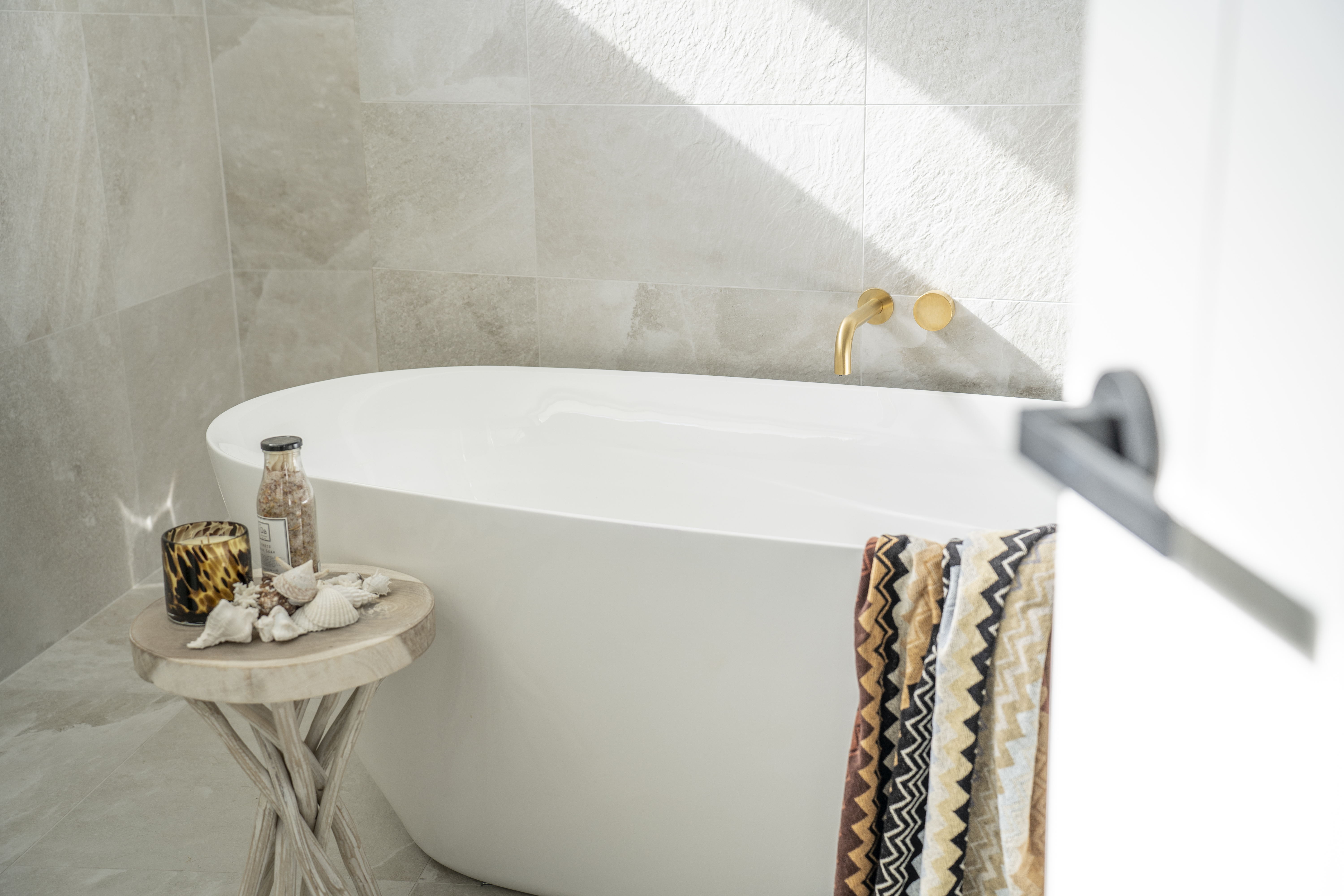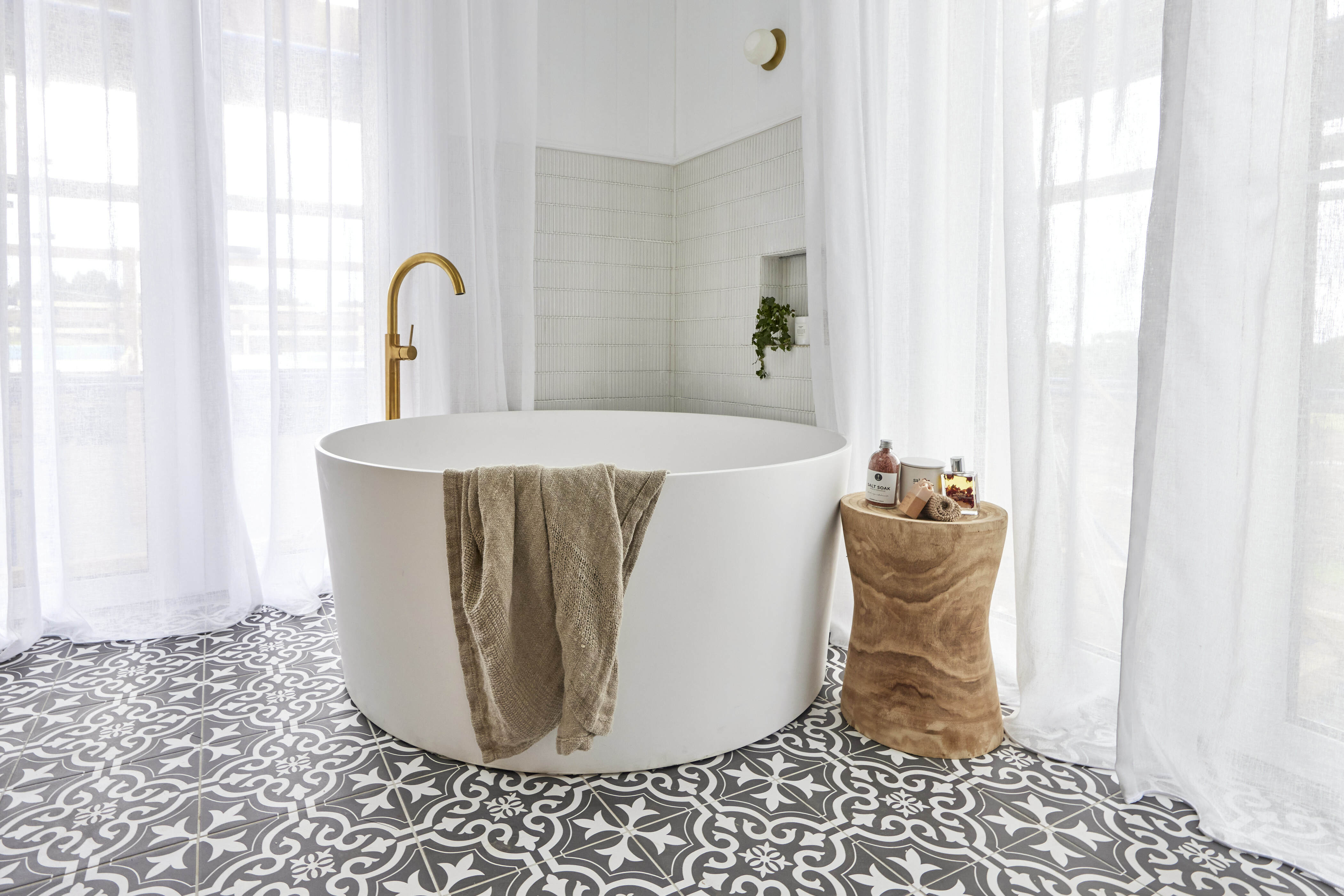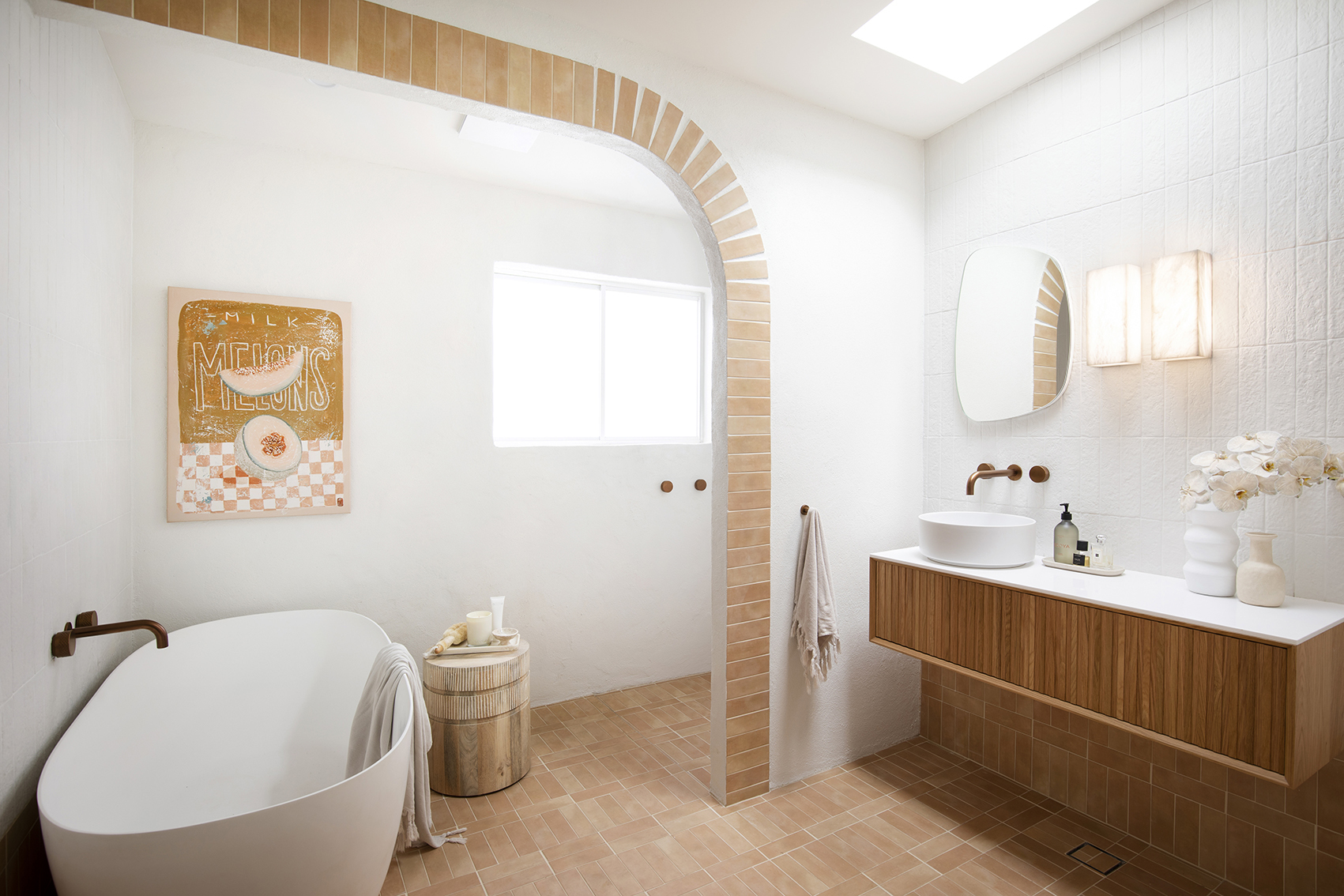 We teamed up with the reno experts, Three Birds Renovations to put our new 3D planner, Imagin3D to the test. It was the first time they tried Imagin3D, using it to visualise and plan the space. They brought Mediterranean chic to Warriewood with their stunning Marrakech tiles, contrasting with the soft white curves of the Roca Inspira Basin and Kado Lussi Solid Surface Free Standing Bath.