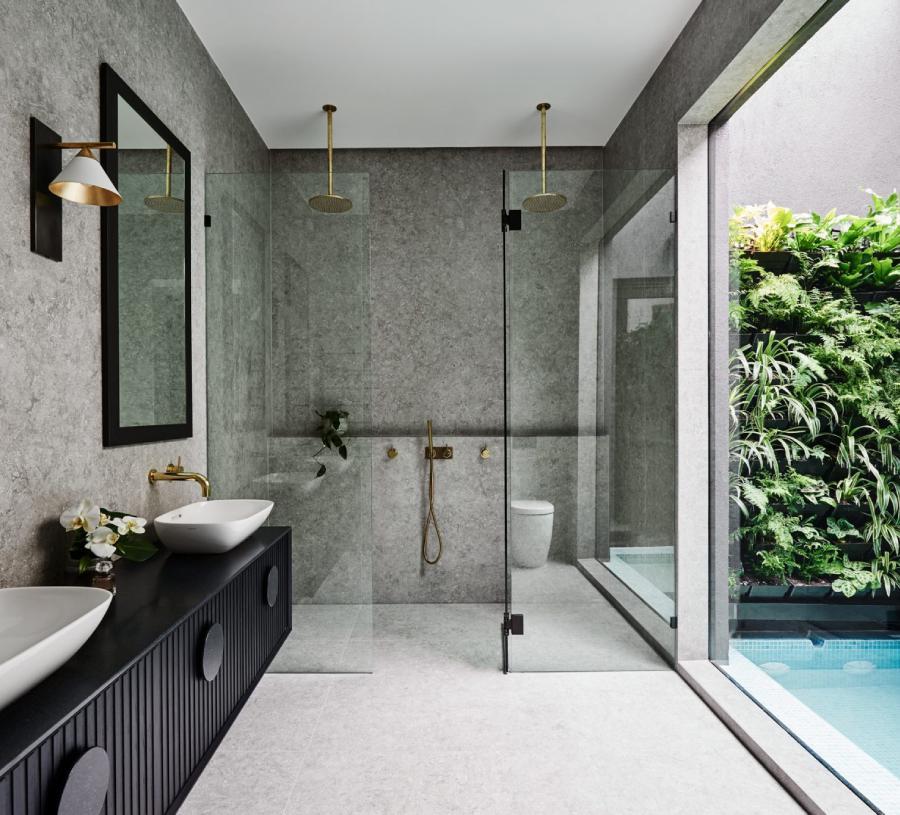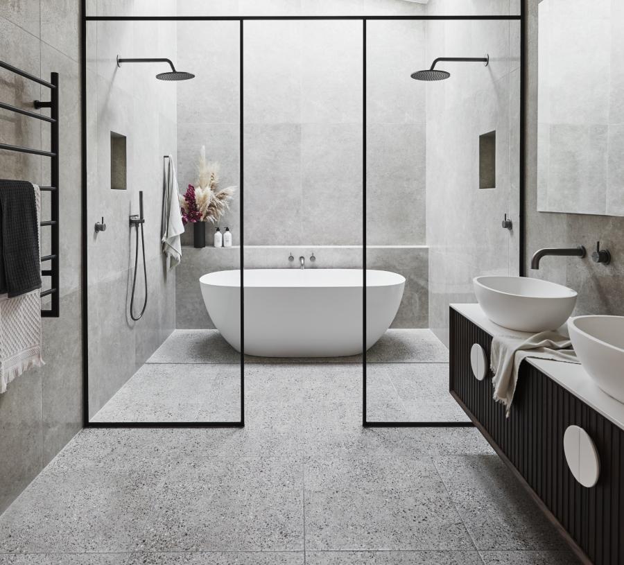In the main bathroom, consider a bath and separate shower for different users’ needs. In the ensuite, focus on making the space cater to its users. For example, this could be a double shower wet zone, and in the powder room go big with mirrors and undermount basins to maximise available space.