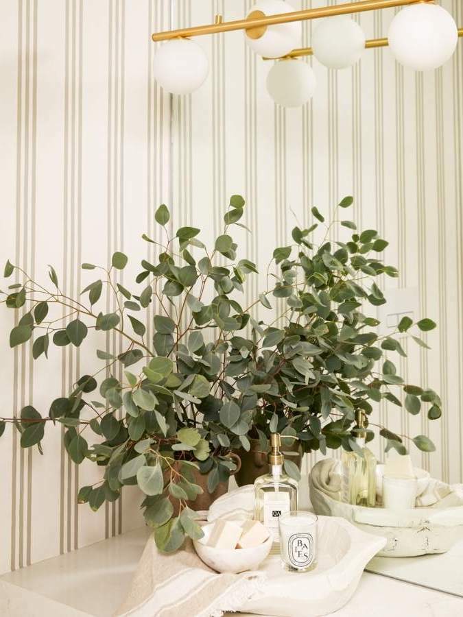Choose classic tiles and timeless fittings, bringing personality into your bathroom through styling. Then style your bathrooms as beautifully as any other room in the house. Greenery, rattan furniture, plush towels, candles, and flowers are all lovely ways to help create atmosphere and can totally change the look of a bathroom.
