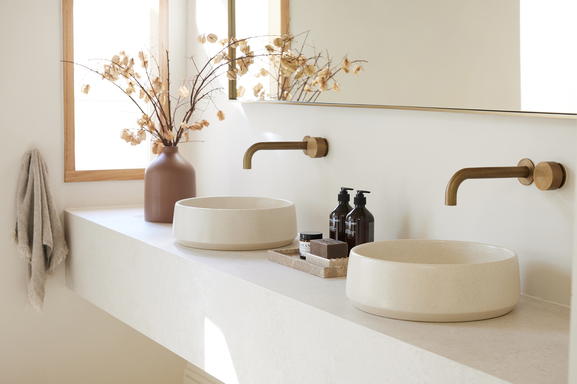 Each room feels cohesive by using the ‘living rustic bronze’ colourway for all tapware and accessories, an innovative material that, with age, transforms from a golden hue to a brassy bronze. We love the idea of choosing a finish that is chosen with intention and will last the test of time.