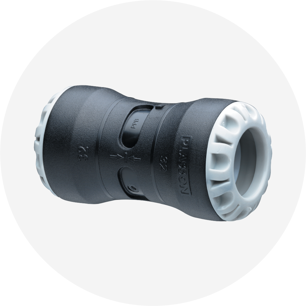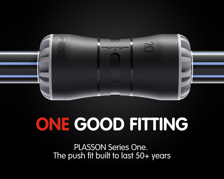 PLASSON Series One offers push fit connections for PE water pipe up to 63mm. The fittings deliver the same reliability and pull-out resistance as conventional compression fittings and can be installed in half the time.