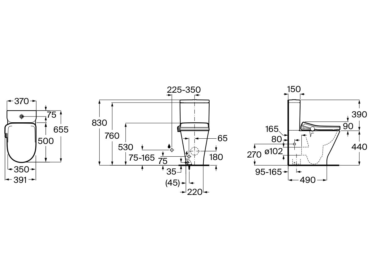 Roca In-Wash Gap Round Close Coupled Back to Wall Bottom Inlet Toilet Suite with Heated Seat (4 Star)