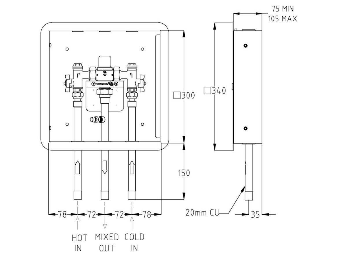 2D DWG - Clinimix Thermostatic Mixing Valve Assembly with Stainless Steel Cabinet & Hinged Door