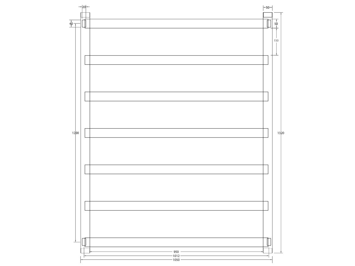 Milli Edge MK2 Heated Towel Rail 1050mm x 1320mm Polished Stainless Steel