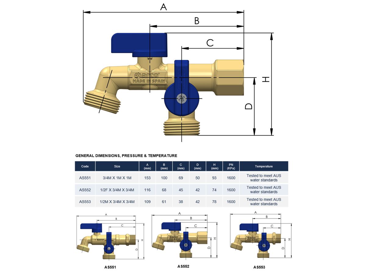 Arco Double Grifo Tap with Non Return Valve Female 15mm Lead Free