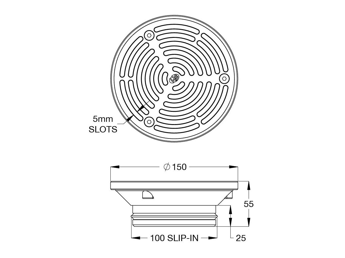 2D DWG - Stainless Steel Cleanout Round PVC/HDPE/CU 150mm x 100mm