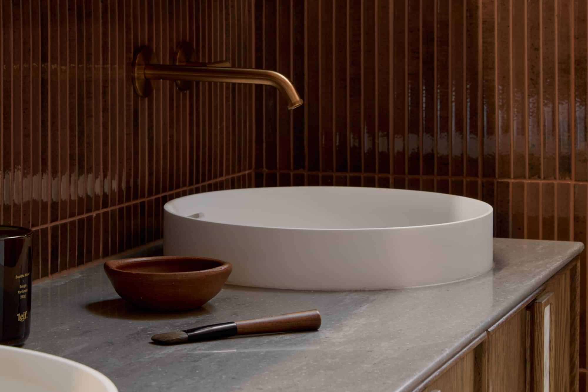Emma and Ben have transformed their Guest Suite into a serene wellness retreat, complete with moss-green colour drenching, cohesive bronze finishes, and the hero-worthy Milli Marq Shower in Bronze. Thoughtful touches like a private kitchenette nook make it as functional as it is luxurious -- perfect for guests who may never want to leave.