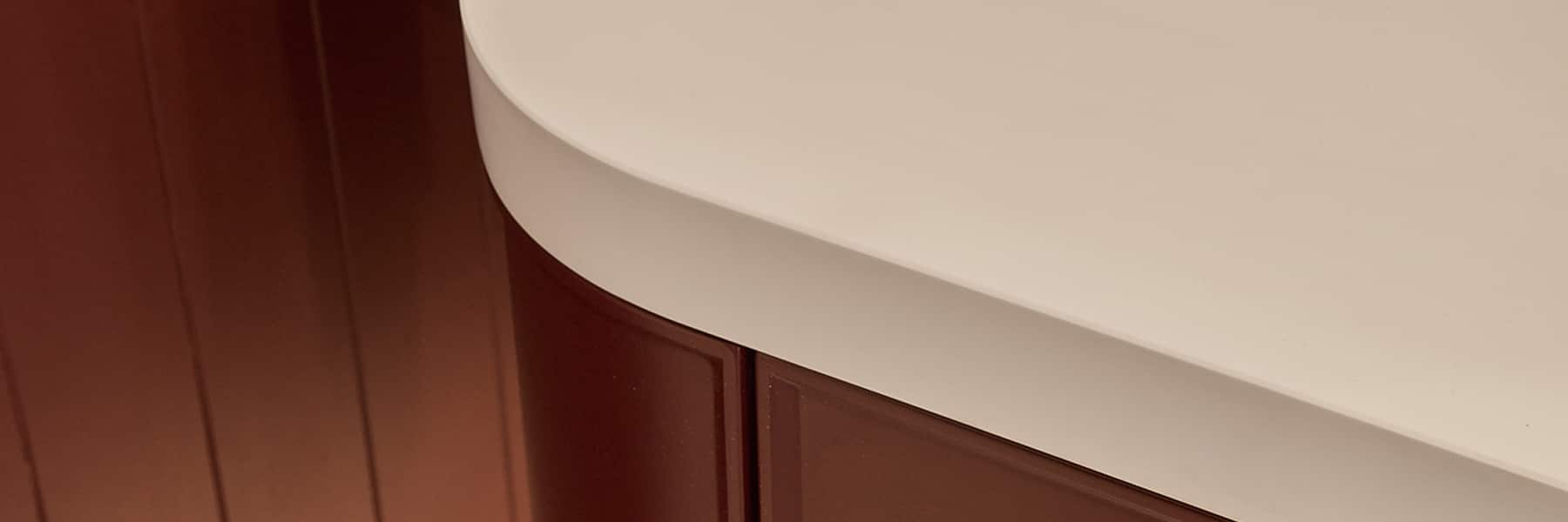 This maroon and burgundy bathroom is a bold, cocooning space that blends rich colour, texture, and personality with a sense of luxury. Featuring the elegant Kado Era collection and brushed gold Milli Etch tapware, every detail works in harmony to create a warm, sophisticated retreat.